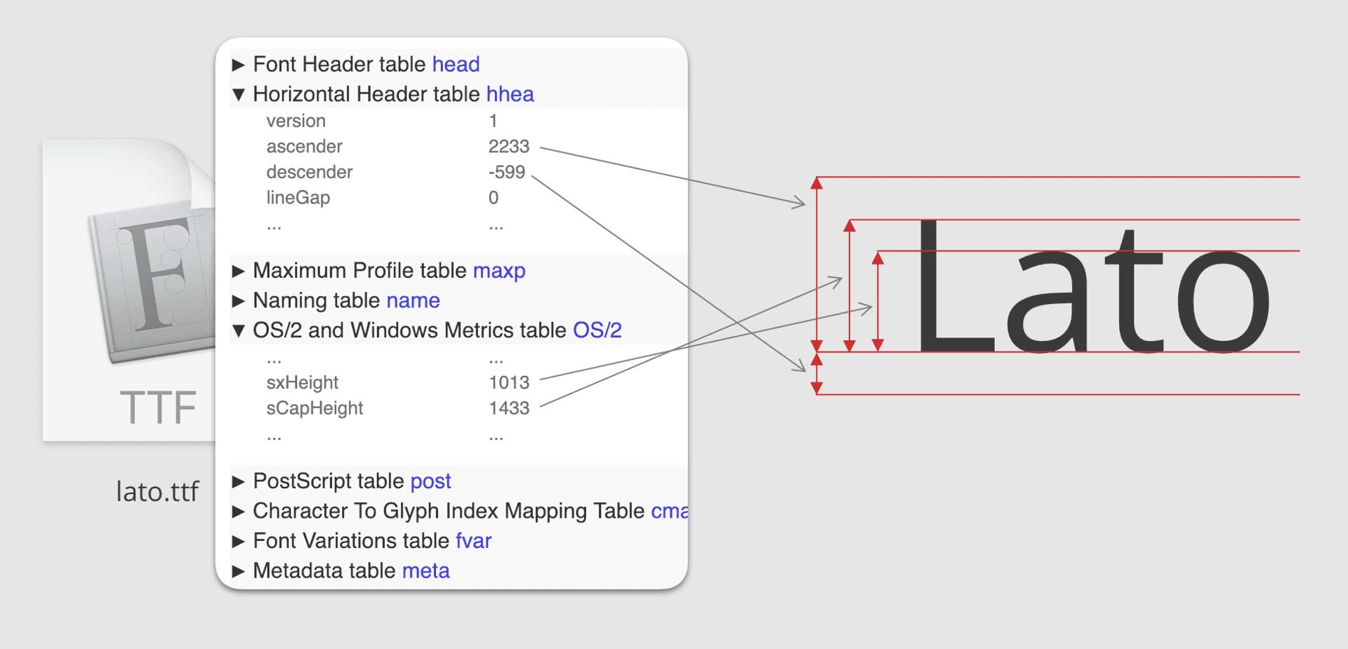 Weston Thayer has gathered together some brilliant insights to the structure of font files with all the information available about a typeface.